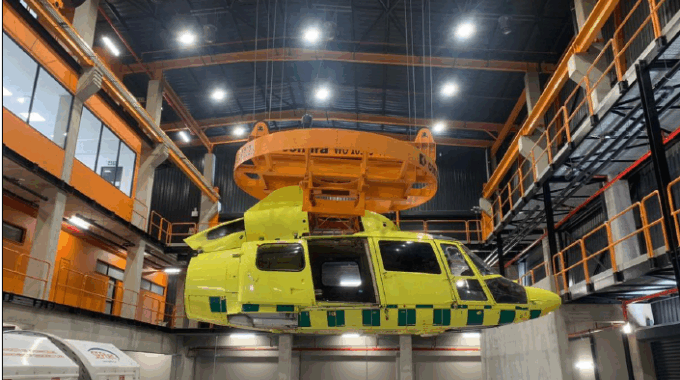 Exxaro’s 18,4-metre span 50/20-ton machine featuring variable frequency drives on the main lift, long travel and cross travel to facilitate precise positioning of very heavy loads, under test in Condra’s Johannesburg factory mid-April 2018.
