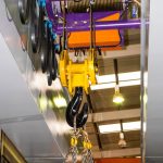 The underside of the crab-mounted hoist, finished in MMC Amethyst.