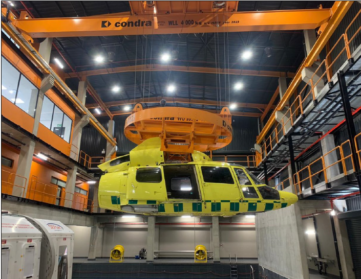 🎉PRESS RELEASE 📅 DECEMBER 9, 2025 This Condra 4-ton overhead crane with suspended helicopter fuselage accurately replicates helicopter motion in the hover,…
